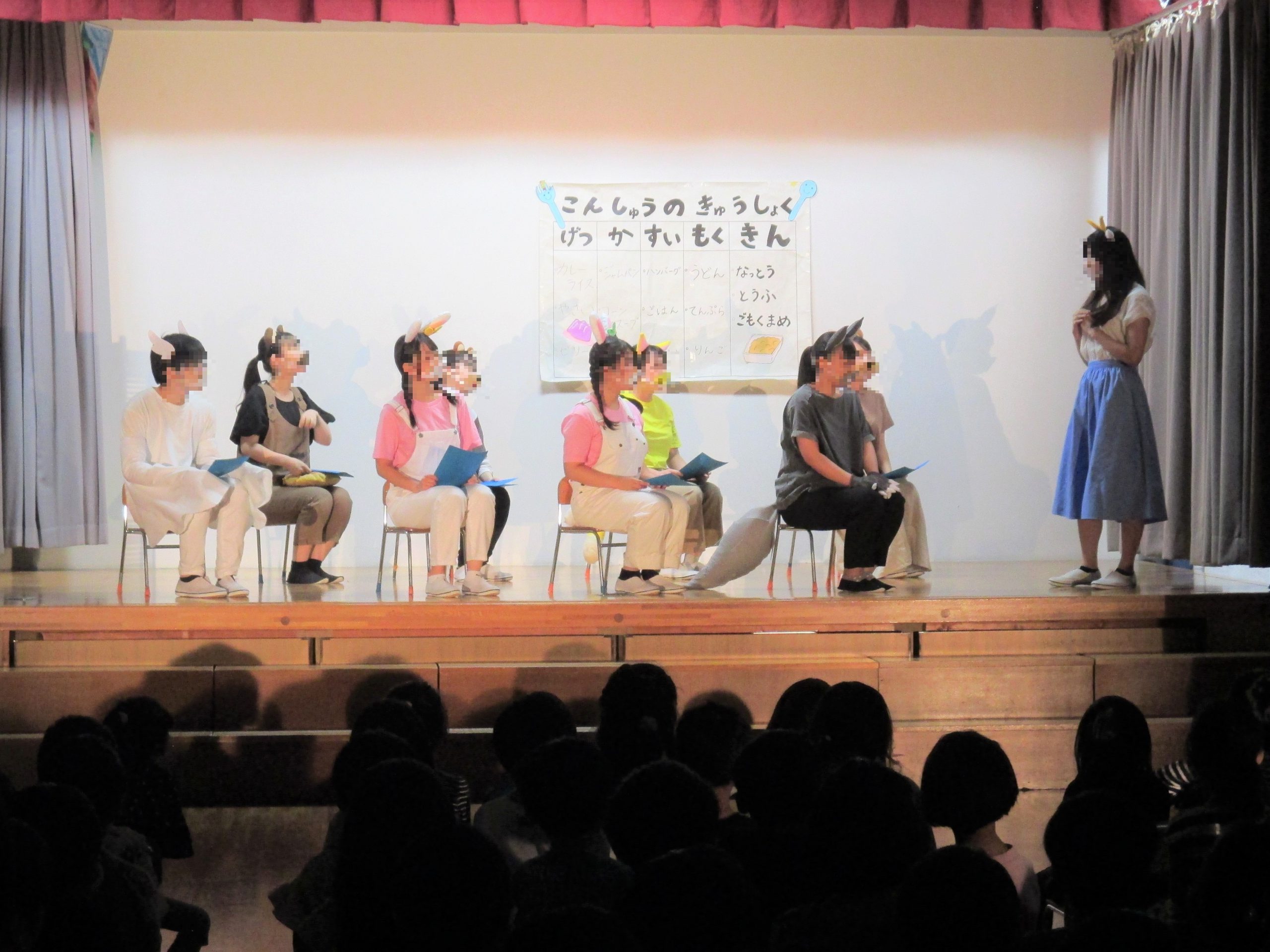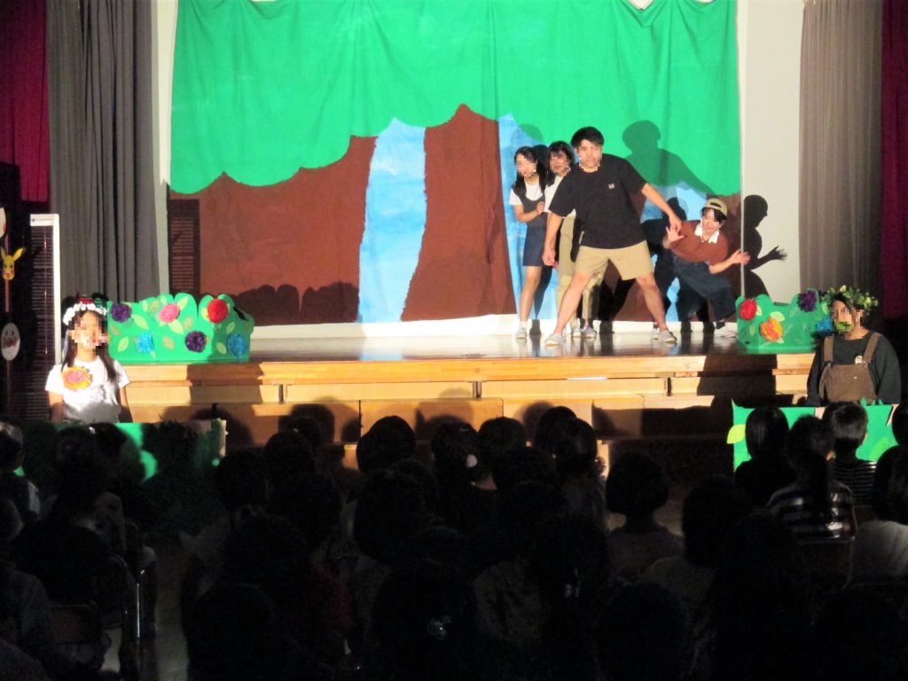 例年9月中旬に行われる「アルウィン祭」で子どもたちに発表している子ども向けのミュージカルですが、今回は「アルウィン祭」が中止となり、発表の場を考え、感染予防に配慮して、玉成幼稚園の年長組の子どもたちに観てもらうことが実現しました。