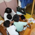 子どもたちと一緒に「花の日礼拝」をしました。その後、幼稚園の子どもたちと手をつないで、「犬、飼ってるんだぁ」「じゃんけんしようよ!」といっぱいお話しながら、日ごろお世話になっている方々にお花を届けに行きました。