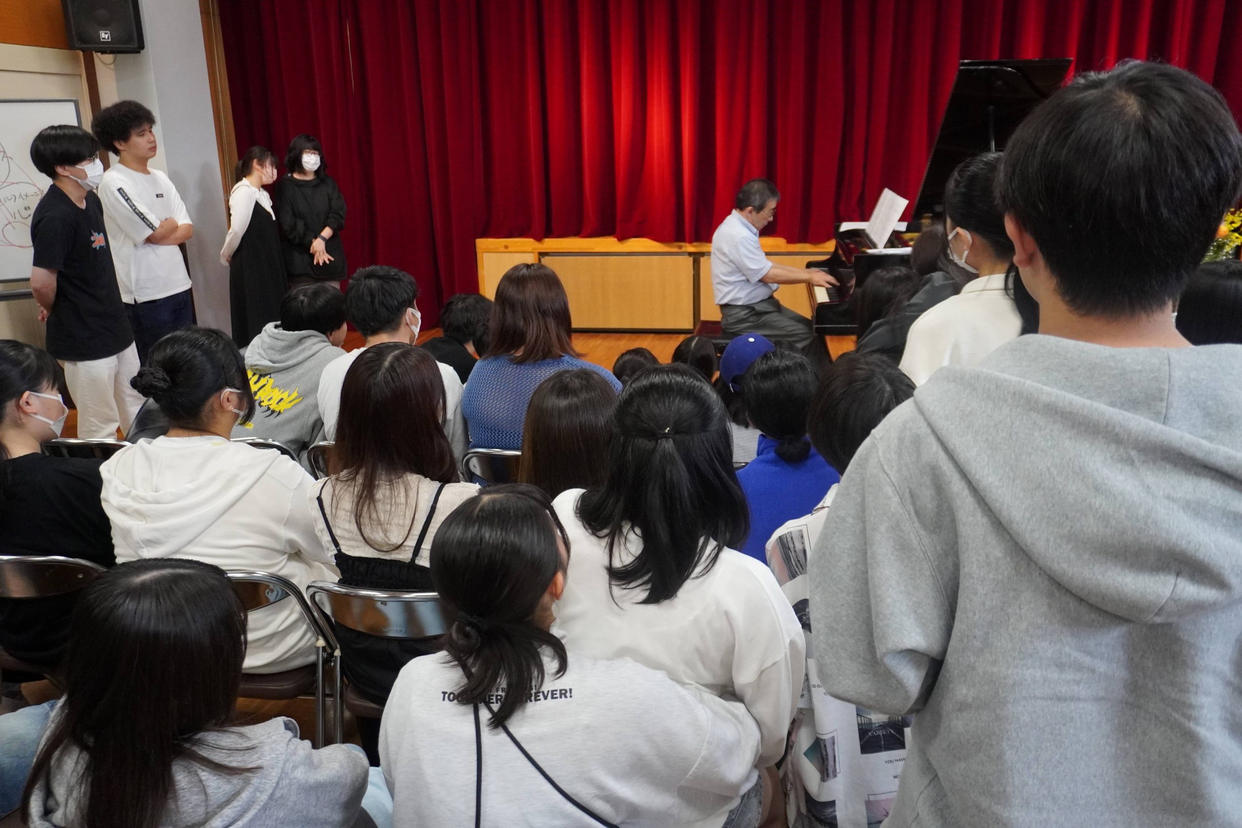 10月7日(月)ピアニストの今井顕先生に玉成保育専門学校でお話とピアノ演奏をしていただきました。プロのピアニストの演奏をこんなに近く、生で聴くことができ、音量と迫力に圧倒された学生たちでした。