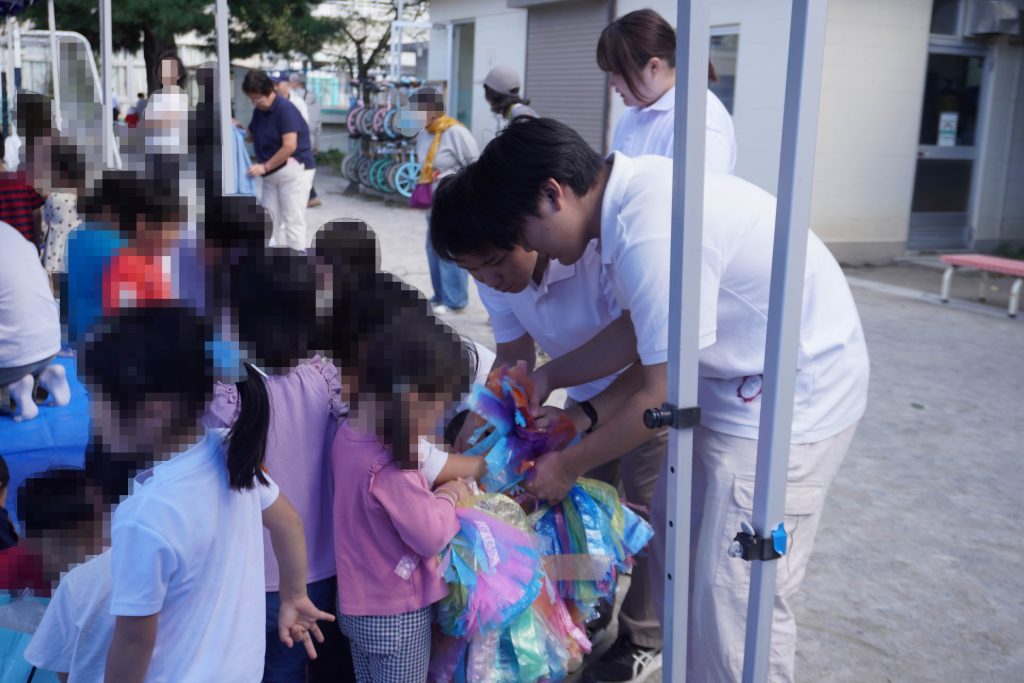 玉成幼稚園の運動会に1年生がお手伝いで参加しました。最初の準備から、途中は用具係やクラスに入って先生のお手伝い。最後の年長リレーは学生が感泣!