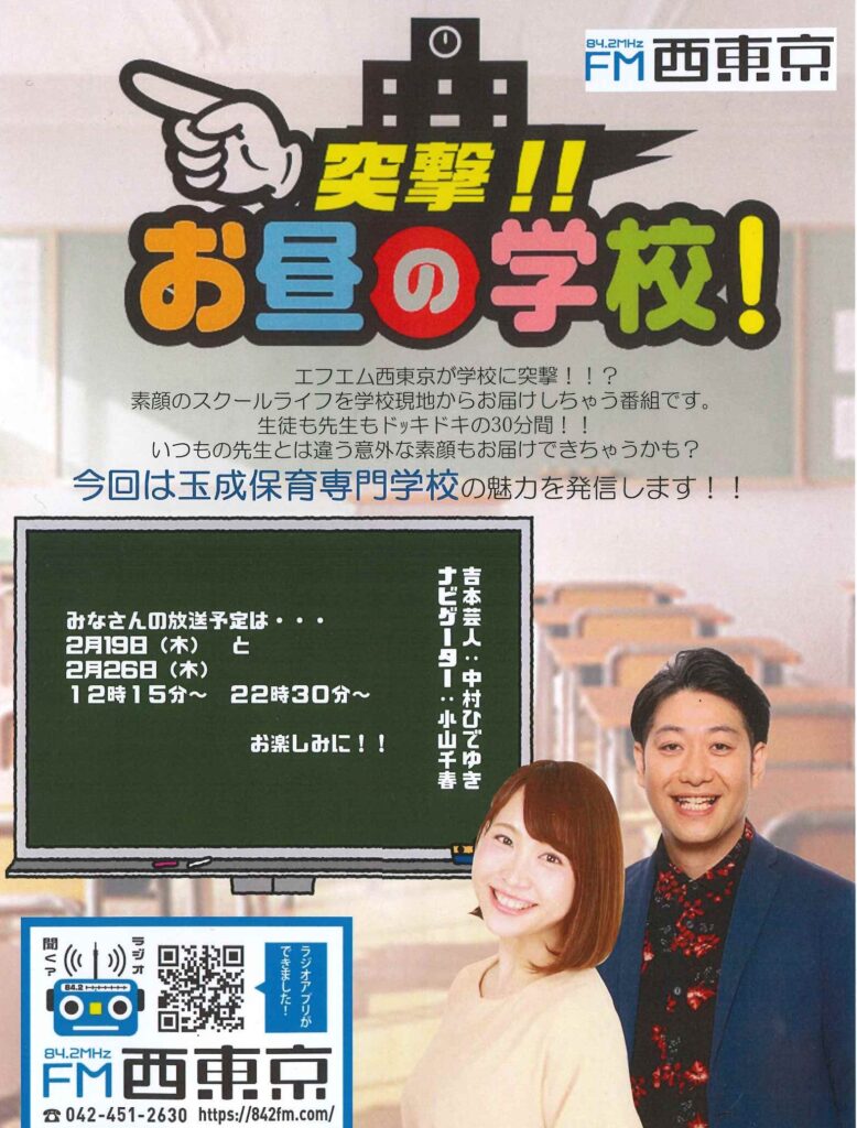 FM西東京『突撃‼お昼の学校!』ラジオ84.2Mhz【番組HP】https://842fm.com/guide/