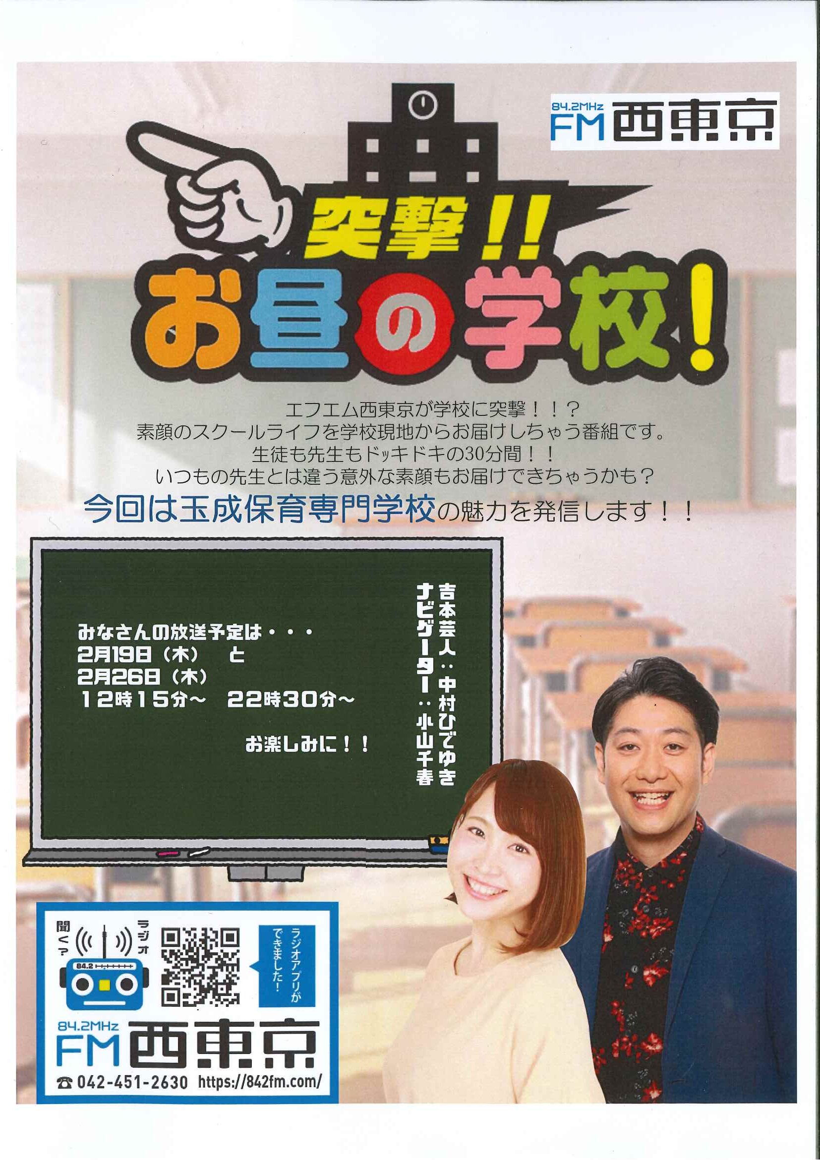 FM西東京『突撃‼お昼の学校!』ラジオ84.2Mhz【番組HP】https://842fm.com/guide/
